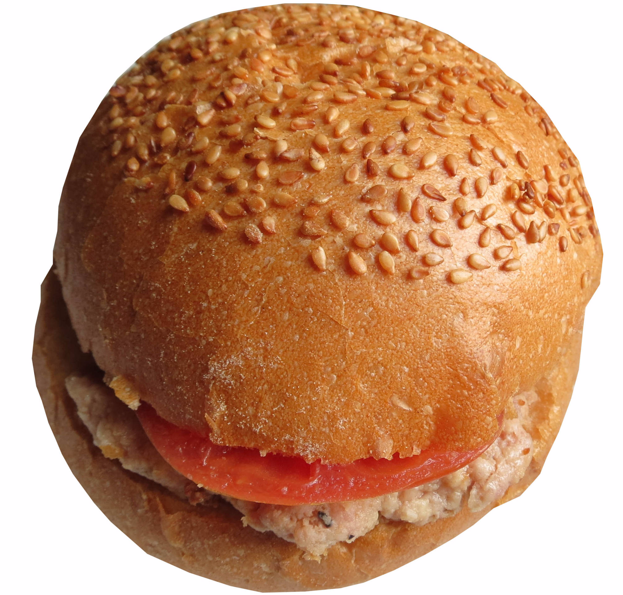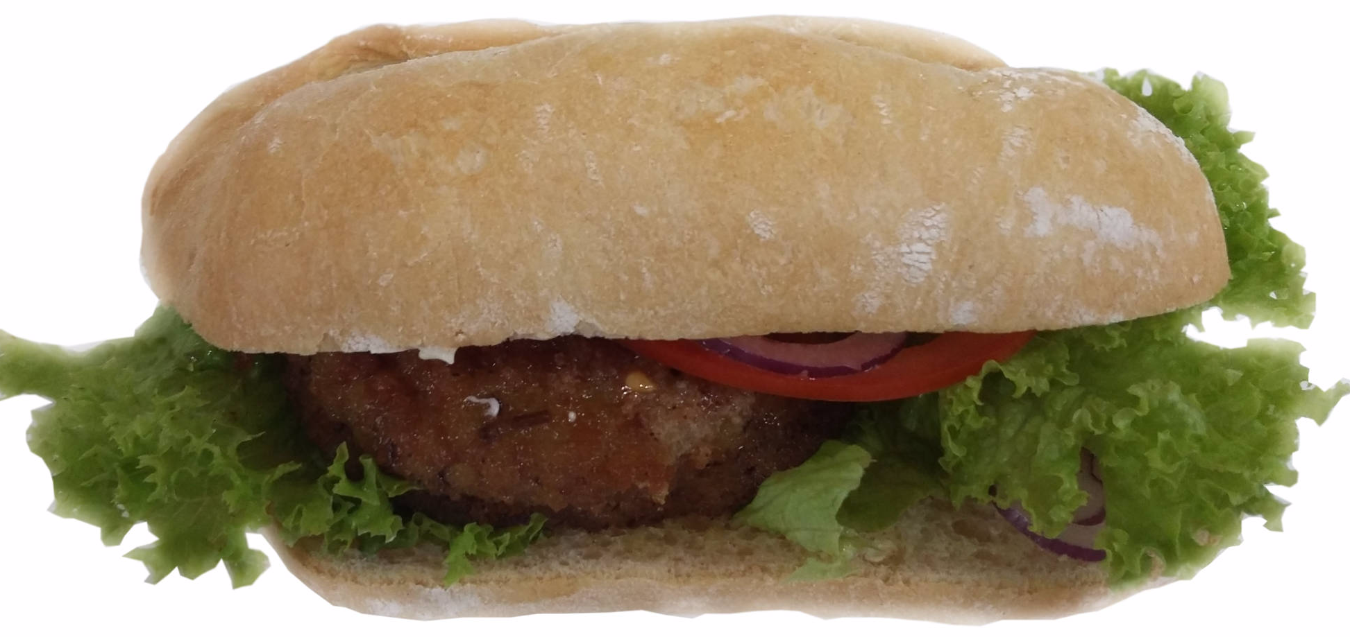 bułka pszenna, sznycel drobiowy w panierce, pomidor, cebula, sałata, majonez, masło roślinne