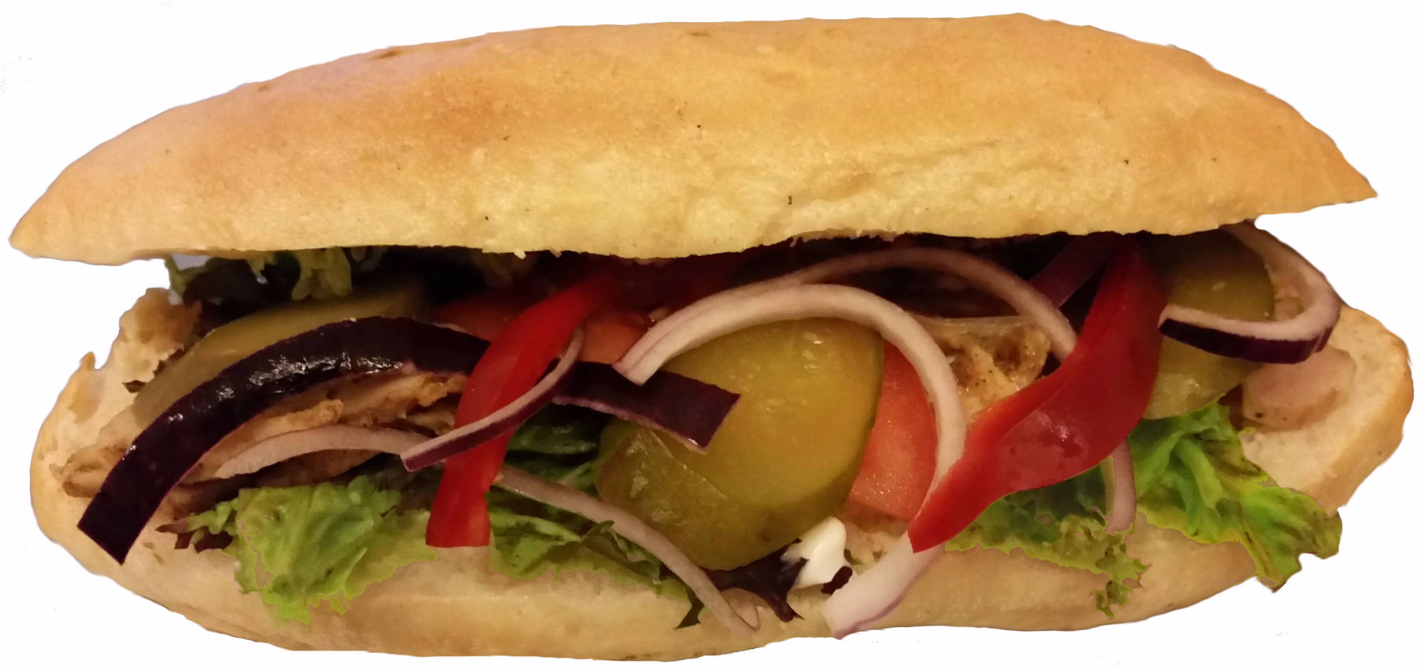 bułka pszenna, filet z kurczaka, sałata mix, ogórek, cebula, ketchup, majonez