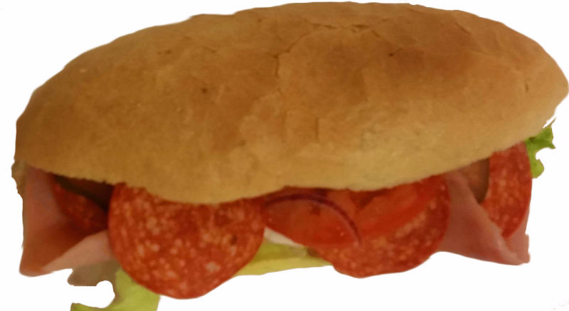 sałata mix, salami peperoni, szynka, papryka, cebula czerwona, pomidor, sos czosnkowy
