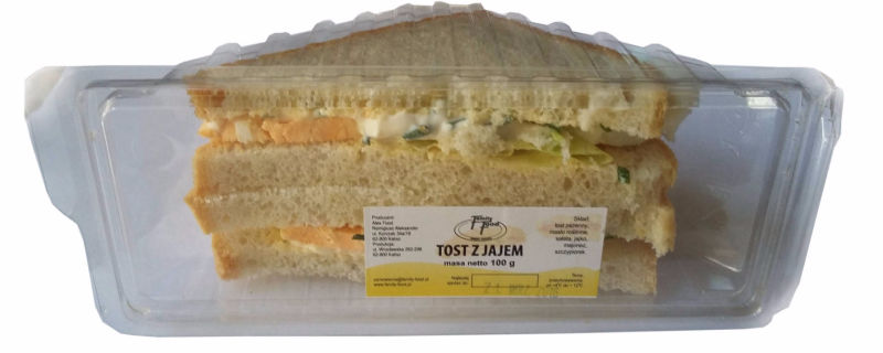 Skład: tost pszenny, masło roślinne, sałata, jajko, majonez, szczypiorek